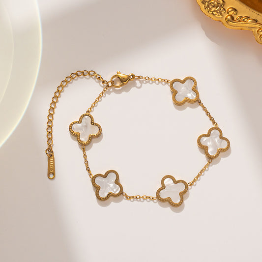 La Bonita 18k Gold Plated Four Leaf Clover Bracelet - White